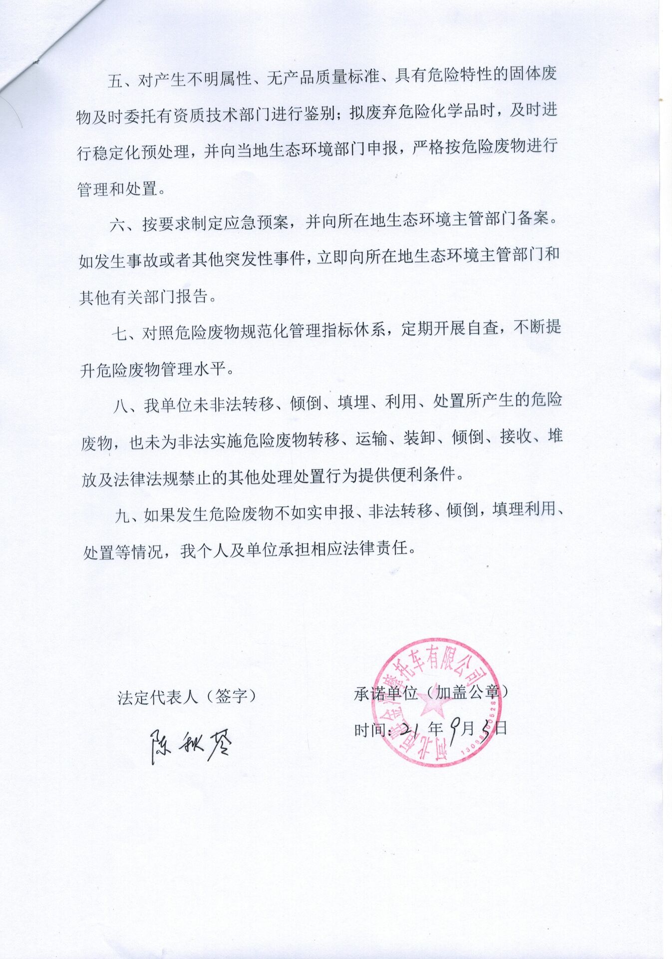 危險廢物污染環(huán)境防治主體責(zé)任承諾書添加時間:2021-9-3  瀏覽次數(shù):2380