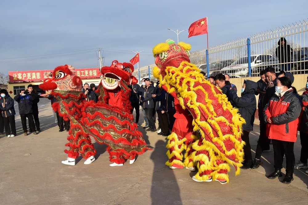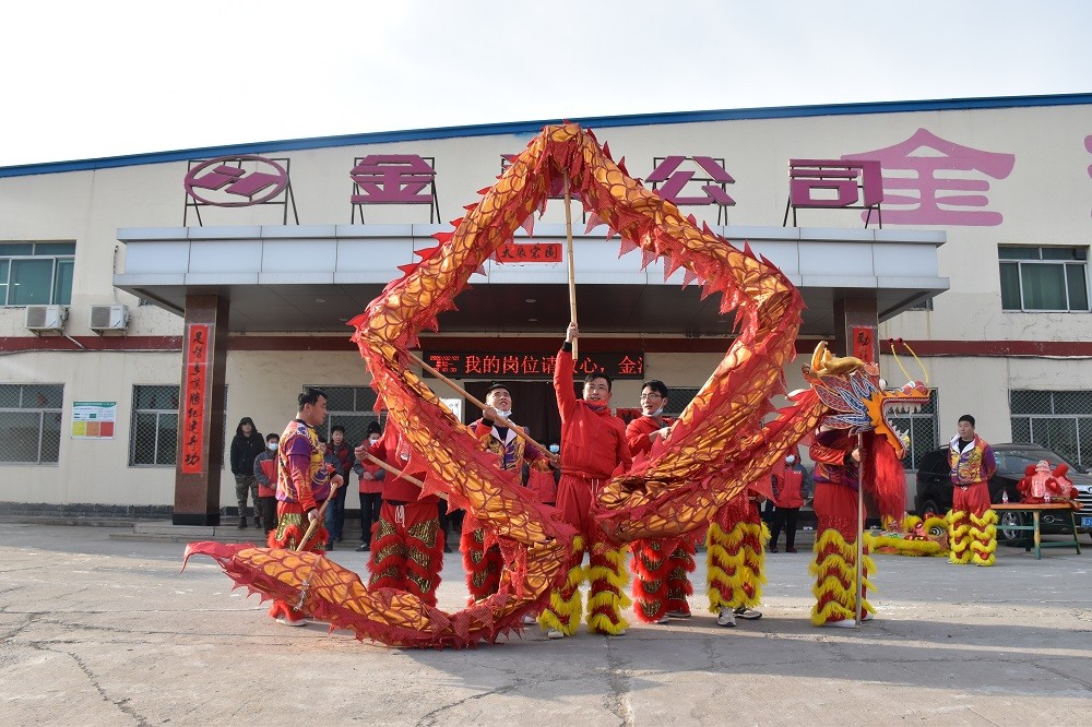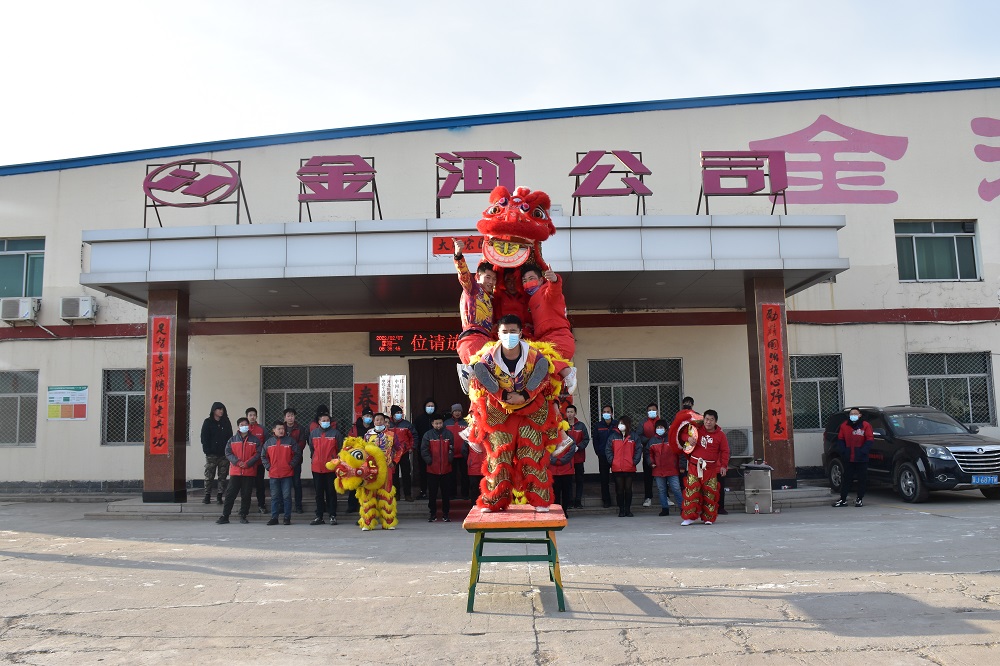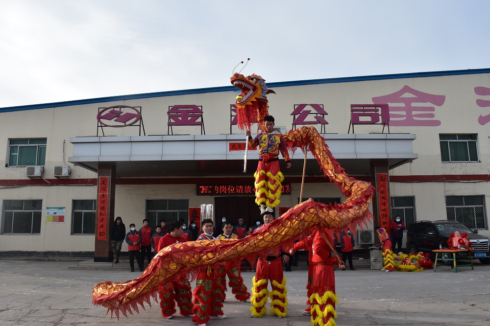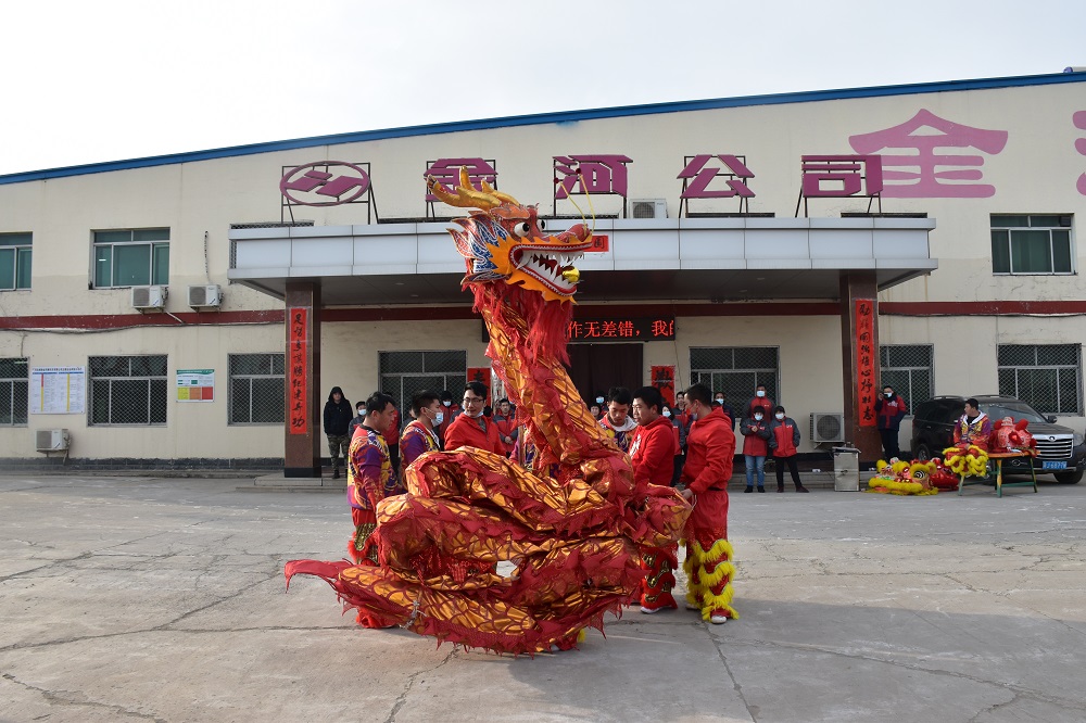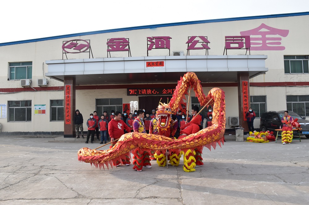 2月7日(正月初七)上午8點(diǎn)09分,是金河公司開(kāi)業(yè)大吉的好日子,公司依然選擇環(huán)保的開(kāi)業(yè)慶祝方式:舞龍獅。多彩耀眼的四只龍獅活潑奔騰,在空中穿梭,激情四射;一條長(cháng)龍變幻姿勢,時(shí)而蜿蜒盤(pán)起,時(shí)而赫然站立,時(shí)而威震四方,公司全體員工在精彩表演氣氛的帶動(dòng)下,瘋狂吶喊,掌聲不斷,跳躍歡呼!威武的雄獅站立在四位高管身邊,加上雄獅口中吐出的吉祥對聯(lián)此乃大吉大利,財源廣進(jìn),虎年虎虎生威之意。祝愿金河公司在2022年大步跨越再戰新程,再接再勵再創(chuàng )偉業(yè)!