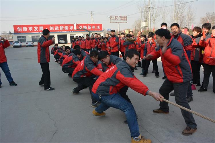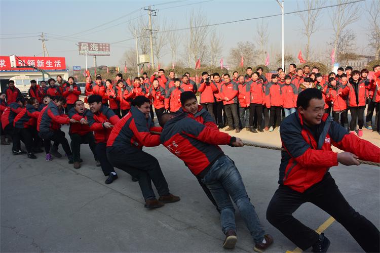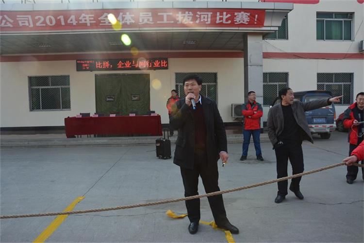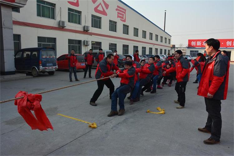 。保苍拢保慈展九e辦員工拔河比賽。六個參賽部門整齊入隊,公司總經(jīng)理親自擔(dān)任裁判長,現(xiàn)場抽簽一一對抗。三個負隊再進行比賽,勝隊進入下一輪爭奪賽。參賽隊員滿臉通紅,牙根緊咬,拼盡全力,互不相讓,為隊爭光,F(xiàn)場氣氛緊張熱烈,拉拉隊聲音高亢有力,響聲不斷提高。員工們的情緒也格外激動,為各自參賽隊加油、鼓勁。麻繩中間紅色的大花一會兒向左移,一會兒向右移,時刻牽動著現(xiàn)場所有人的心,中間穿插的即興比賽讓現(xiàn)場氣氛幾乎失控。最后由生產(chǎn)總助和銷售總助為獲獎隊頒發(fā)獎品。中干組成的后勤隊,憑借頑強意志和拼搏精神,贏得了比賽亞軍。