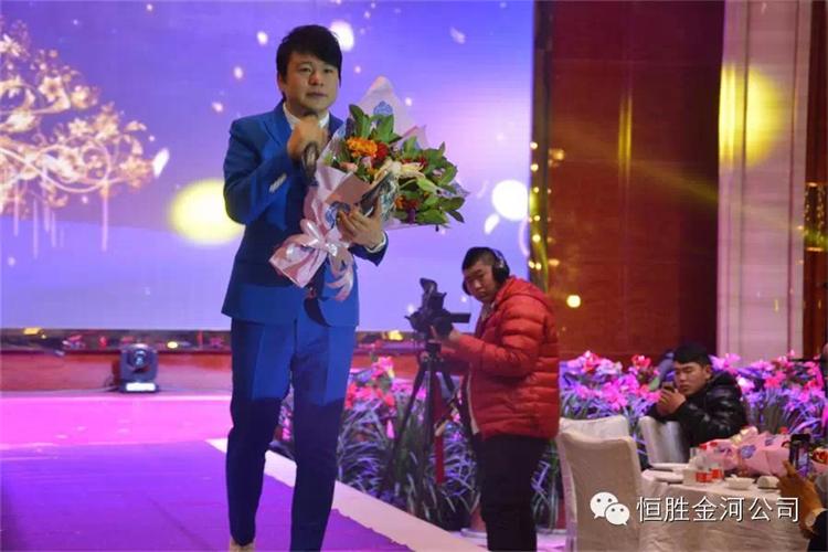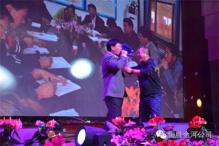 1月7日17:00晚會開始,張市長及諸位領(lǐng)導(dǎo)就座貴賓席,文藝演出中穿插的金河公司詩朗誦:〈我是金河人,我驕傲〉;男生大合唱:〈咱金河的人〉;流行舞蹈:企業(yè)文化版本配帶〈小蘋果〉舞蹈現(xiàn)場氛圍火爆,高潮跌起,總經(jīng)理被現(xiàn)場氣氛點燃,情緒高漲上臺即興演唱:〈鴻雁〉,聲音優(yōu)美,掌手不斷。