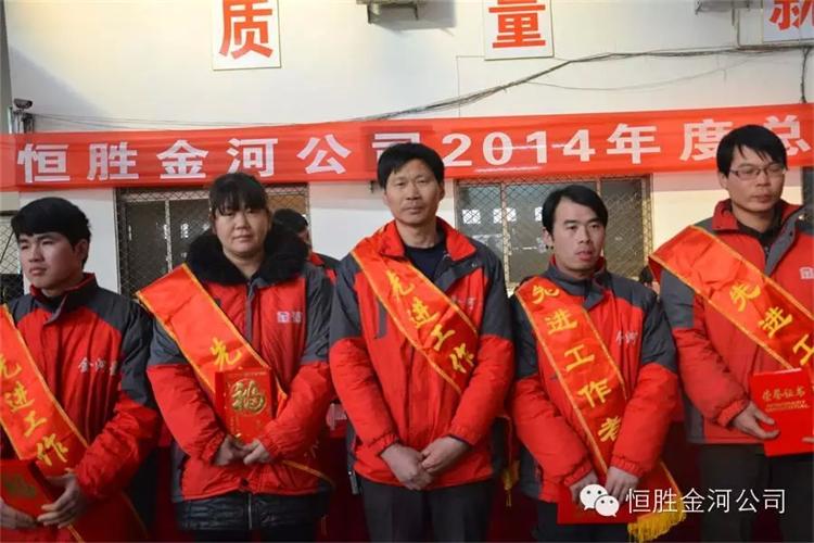 2015年2月8日下午,召開恒勝金河2014年度總結(jié)表彰大會(huì),伴隨著入場(chǎng)音樂,全體員工整齊有序進(jìn)入會(huì)場(chǎng),合唱〈咱金河的人〉。公司高管、中干在主席臺(tái)就座,行政辦主任做2014年度工作總結(jié)報(bào)告。